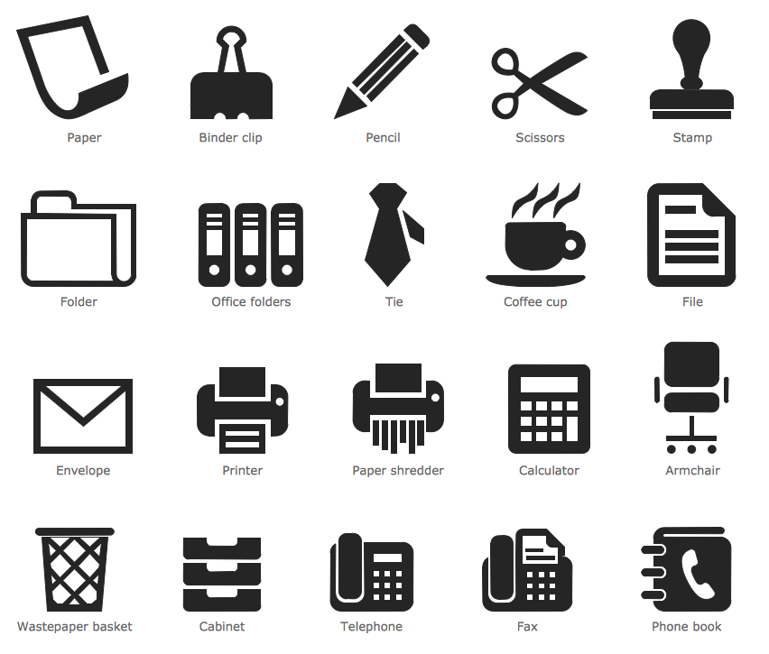 The Office Pictograms library from the Pictorial Infographics solution contains 20 vector office pictograms that allow you design pictorial infographics charts for the announcements, letters and messages.