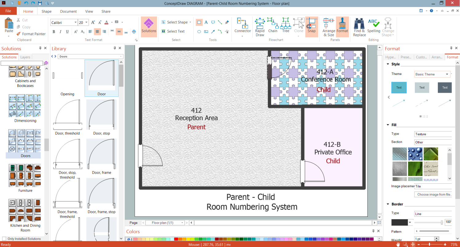 A lot of DIY projects can be easily made in ConceptDraw DIAGRAM software. An extensive set of drawing tools of the ConceptDraw's Floor Plans solution will easier the drawing process. Construct your Floor Plan, add colors, textures, or some unusual things to get an exclusive design for any location, your home, office, etc. Different pre-made options and any desired graphic files stored on your computer can be used as textures for the objects on your Floor Plan.