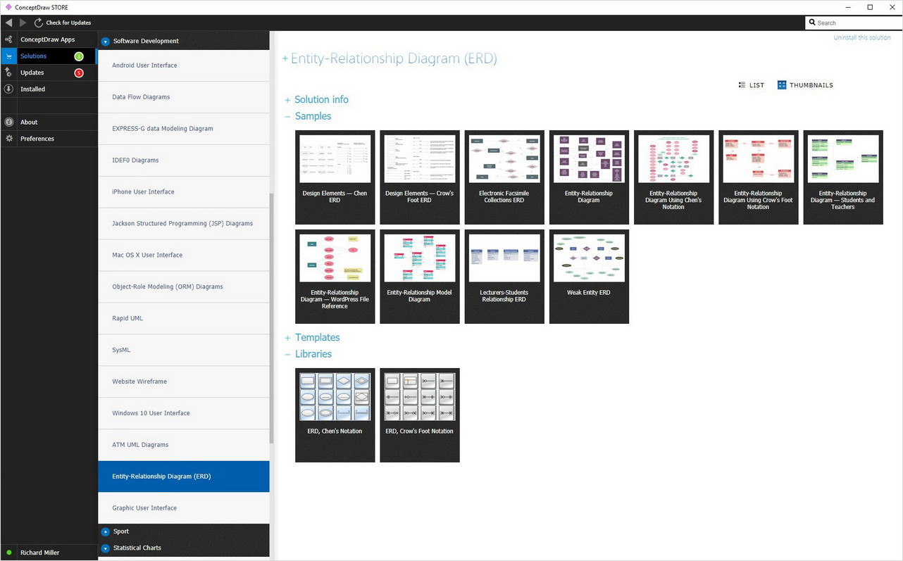 Open ConceptDraw STORE, check the ERD solution and click “Install”.