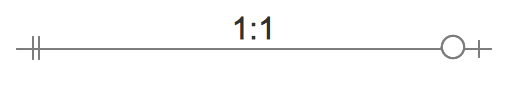 a one and only one notation on one side of a relationship and a zero or one on the other | |
