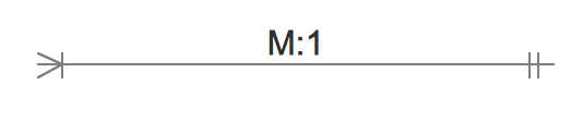a one through many notation on one side of a relationship and a zero or one notation on the other | |