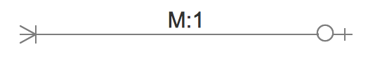a zero through many notation on one side of a relationship and a one and only one on the other | |