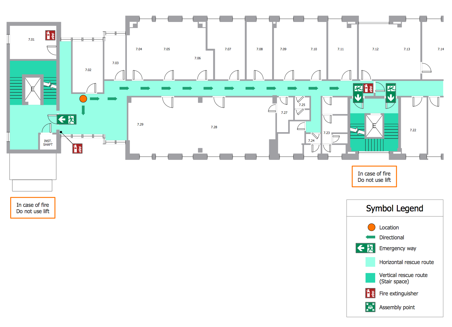 Fire and Emergency Plans solution provides large collection of high-quality samples and examples, and three libraries for fast and simple designing Evacuation Plans: