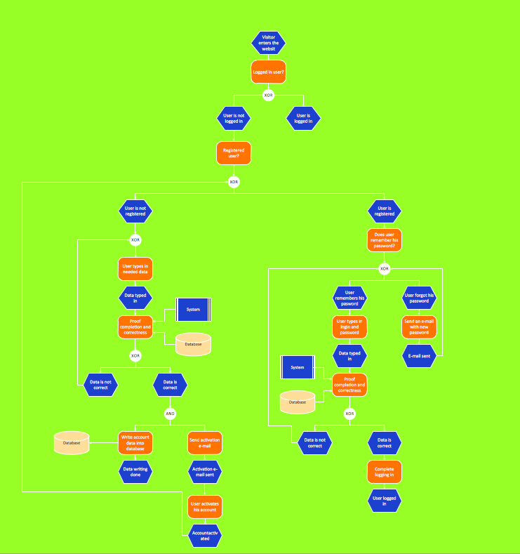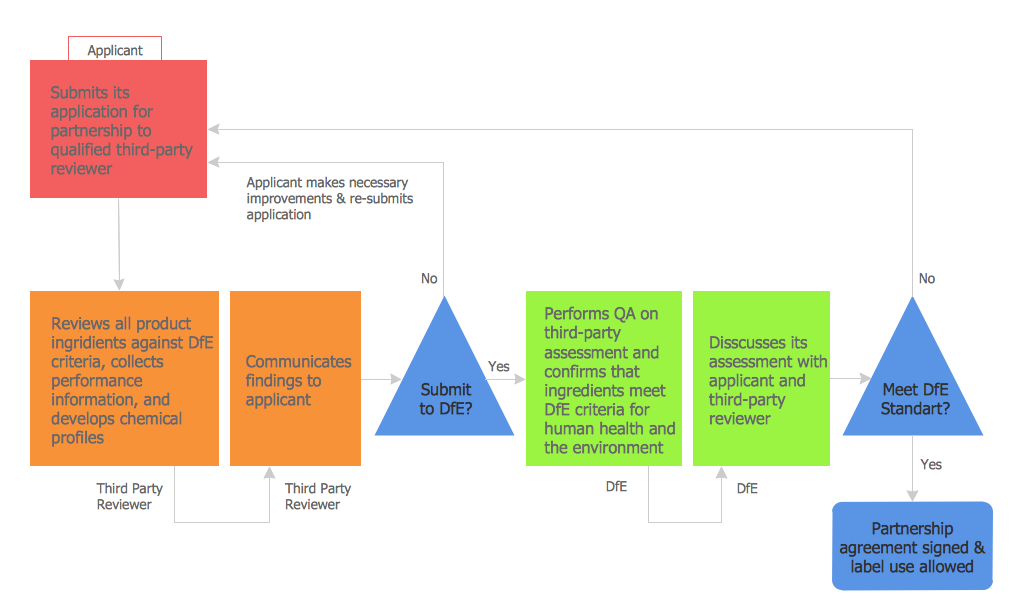 ConceptDraw DIAGRAM vector diagramming software and ConceptDraw Solution Park provide a wide variety of diagrams, organizational charts, business charts, and examples of flow charts, templates, and samples. You are free to choose any example or Flow diagram template you are interested in from the ConceptDraw STORE, then use it to simplify your work at designing professional-looking Flowcharts and diagrams.