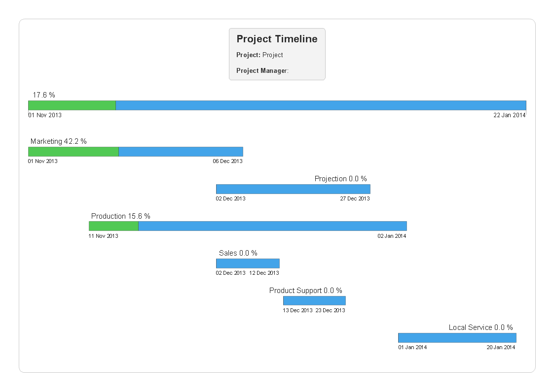 The Timeline diagram gives you a timeline of all your projects and their level of completion on one page.