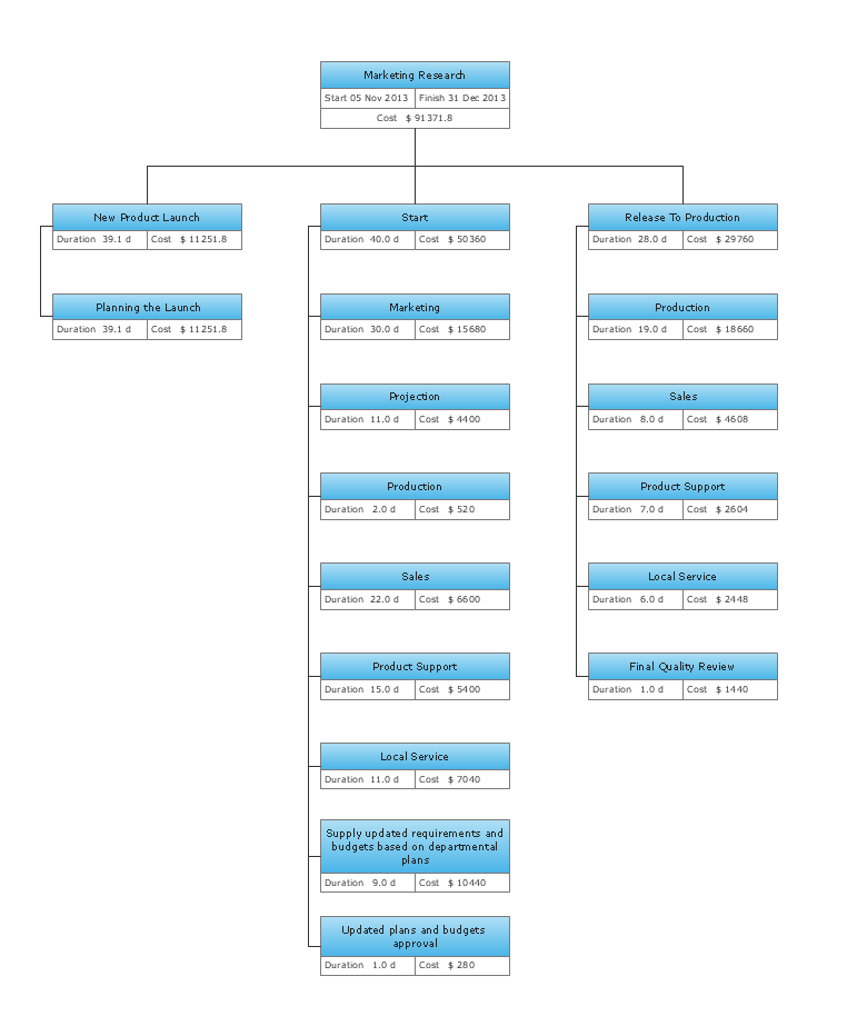 ’s powerful reporting engine lets you generate a set of tabular reports with just one click, or visualize your project as Radial Tasks Structures, Work Breakdown Structures and Resource Calendars. It also provides you with dynamic Project Dashboards.