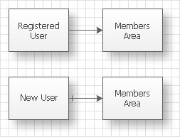 In case of a resource usage by users with different levels of access (registered users, unregistered users, administrators, moderators, etc.) with the help of conventional connectors or arrows on the diagrams there are indicated variants of users work at the execution of definite conditions. Conventional connectors and arrows are represented in dotted lines. It is also possible the usage of the branchy structure with elements of selection of further action at the fulfillment or non fulfillment of the condition.