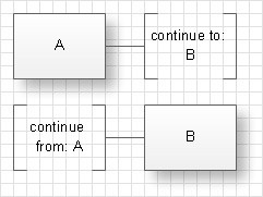 If the structure of the resource is sufficiently complicated or connected elements on the diagram are located far from each other then you can use breaks in connectors so that not to draw the connector through the whole diagram. Breaks and continuations are denoted with square brackets with the denotation of the element to which the connector leads and, correspondingly, from which the connector leads.