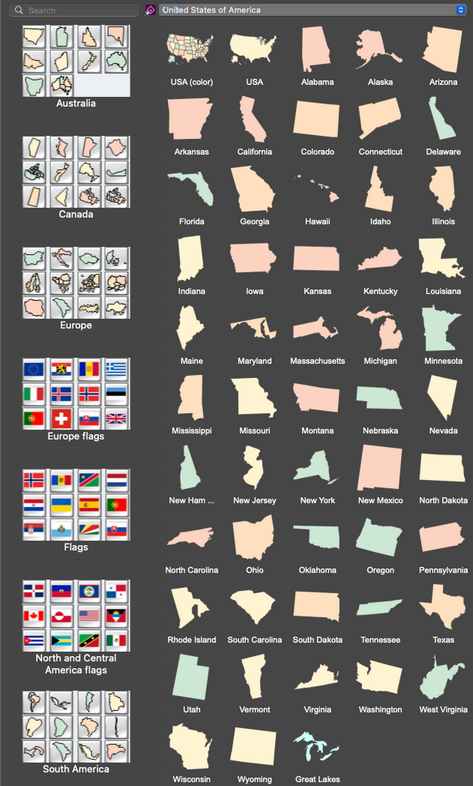 The large collection of pre-made map contours is also beneficial for fast and easy map of USA drawing and creating individual diagrams of USA states by both professionals and beginners.