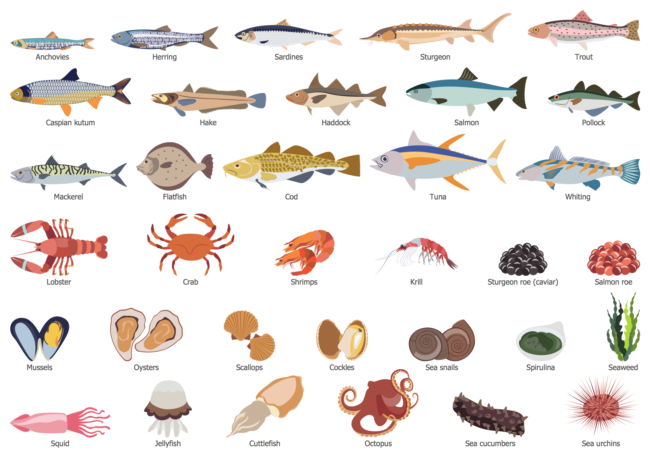 Variety of predesigned objects of healthy foods is represented by 8 libraries included in Health Food Solution. These libraries contain 238 ready-to-use clipart specially developed for ConceptDraw DIAGRAM users. All they are vector, so you can easy resize them without loss of quality, change their color, combine several clipart to make your health food infographics and illustrations more interesting, bright and attractive.
