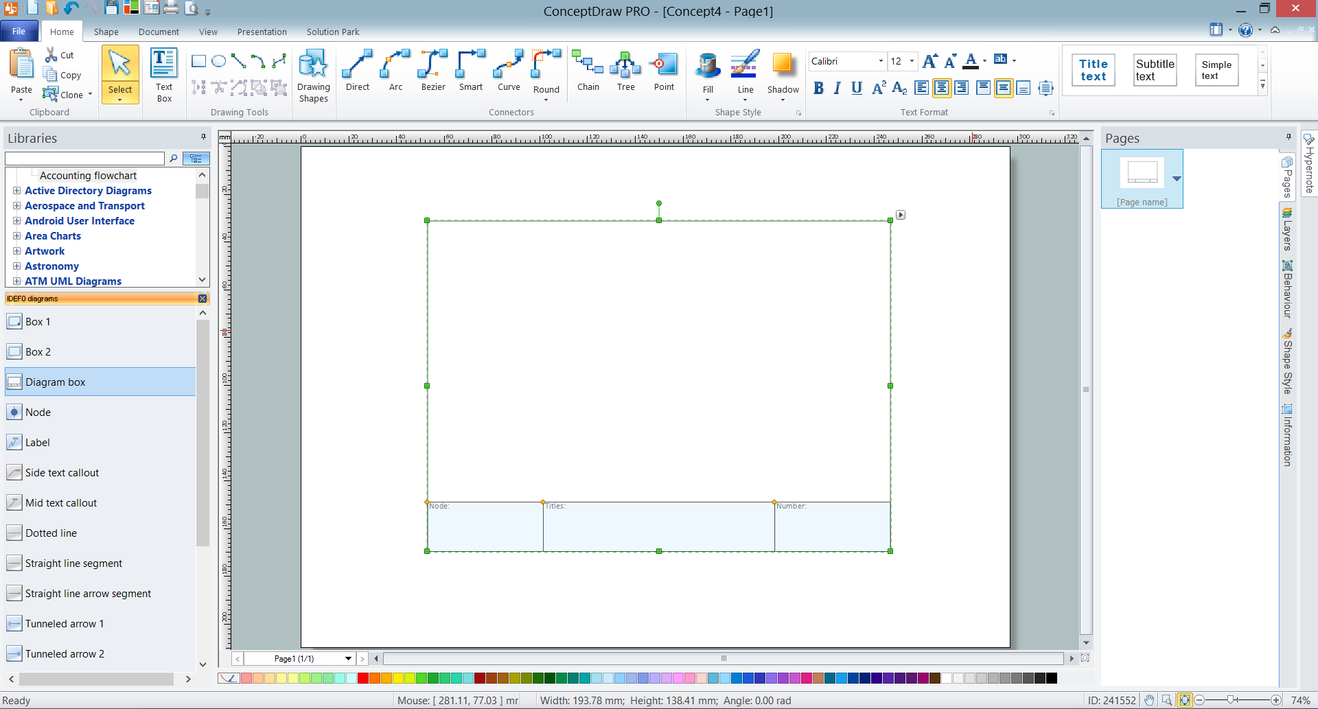 - You can start design with Diagram Box element from the IDEF0 Diagram library.