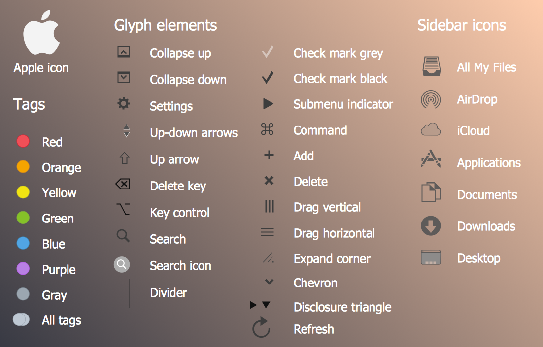 - Large quantity of ready-to-use vector objects makes your drawing GUI interfaces for Mac OS quick and easy.
