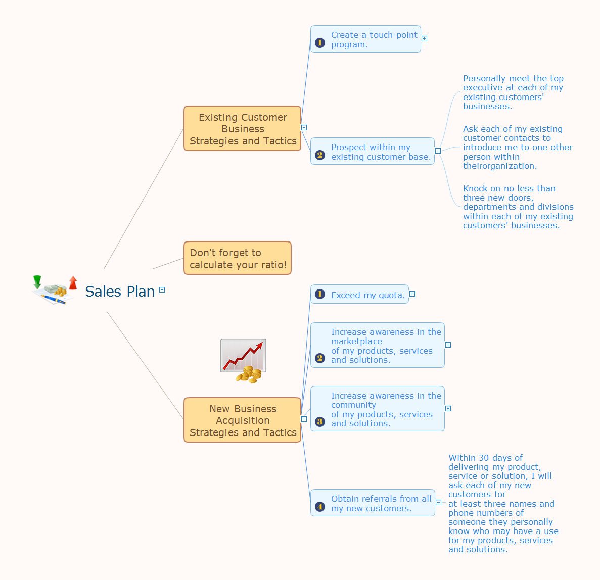 - Knock on no less than three new doors, departments and divisions within each of my existing customers' businesses.