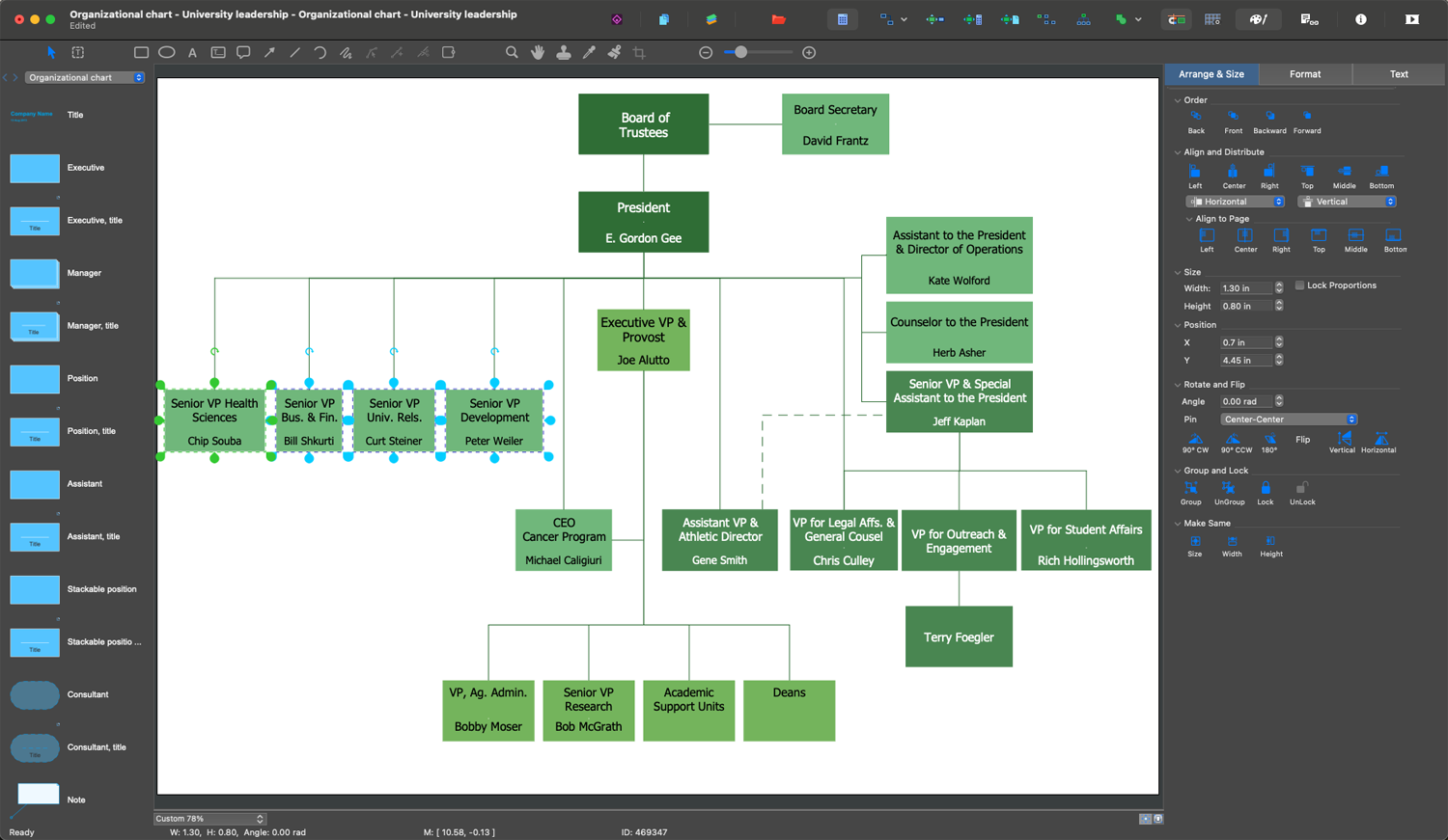 ConceptDraw DIAGRAM software enhanced with the Organizational charts solution is a powerful software with a user-friendly interface and powerful tools, which will help you to make an Organization chart and design it professionally looking. It also assists in managing complex systems and keeping them up-to-date. Predesigned shapes, customization options, and wide export and integration capabilities make this software the ideal Org chart maker.