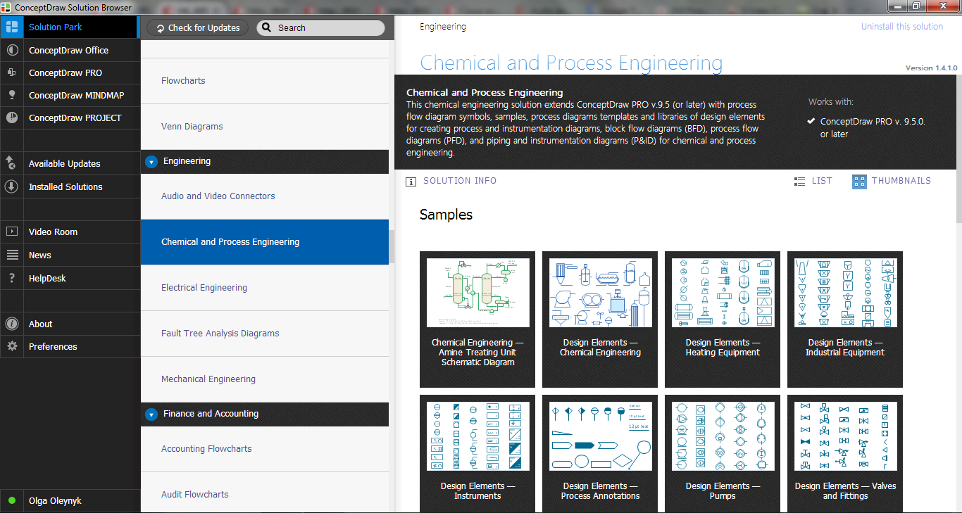 Chemical and Process Engineering Solution contains all needed tools for designing the Process and Instrumentation Diagram of any complexity. At your disposal are 8 libraries with 468 predesigned vector objects which are simply indispensable for easy drawing: