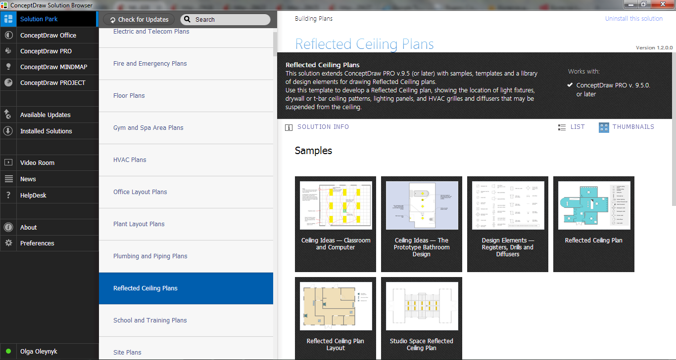 All source documents are vector graphic documents. They are available for reviewing, modifying, or converting to a variety of formats (PDF file, MS PowerPoint, MS Visio, and many other graphic formats) from the ConceptDraw STORE. The Reflected Ceiling Plans Solution is available for all ConceptDraw DIAGRAM or later users.
