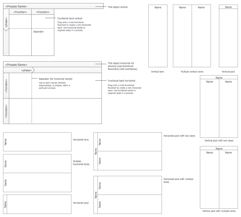 - Flowcharts Rapid Draw (Swimlane Flowcharts) - This library contains vector shapes for drawing flowcharts.