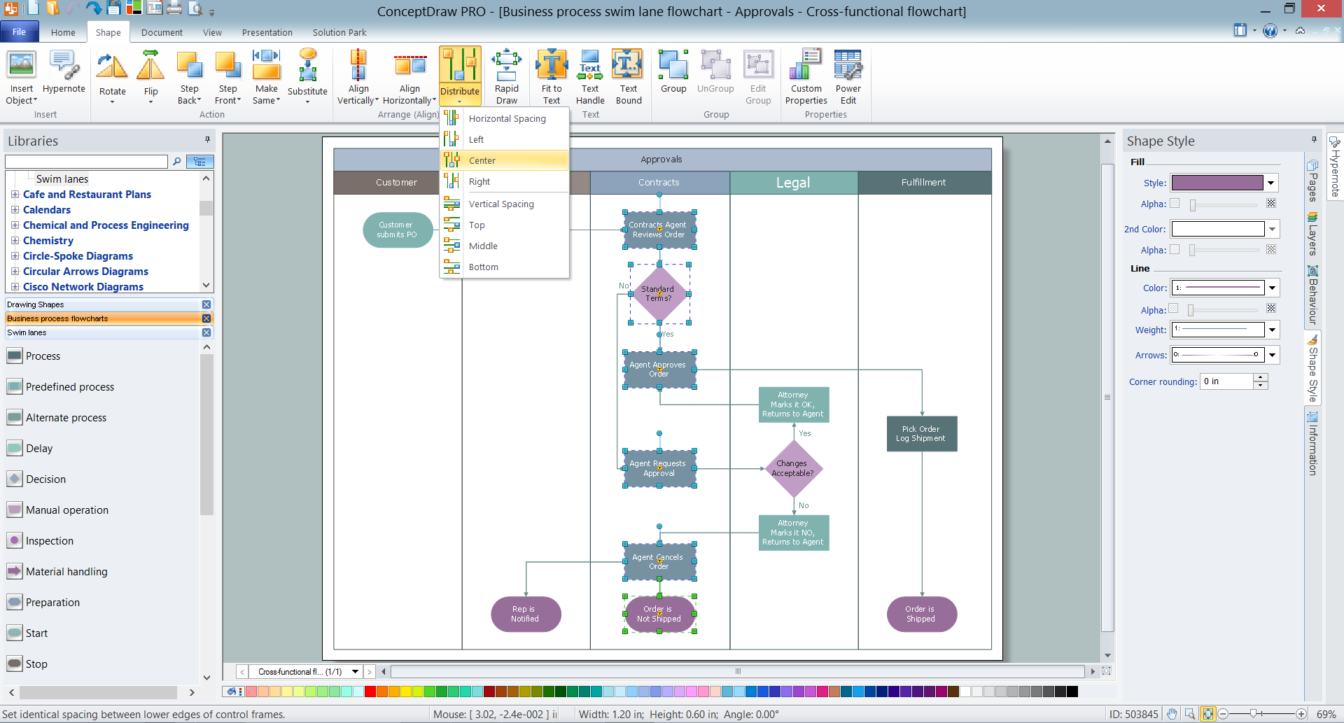 Apply also the Line, Fill, Shadow, Text and Align tools to format your diagram objects to easy make your diagrams, flowcharts and maps accurate, bright, pictorial and attractive.
