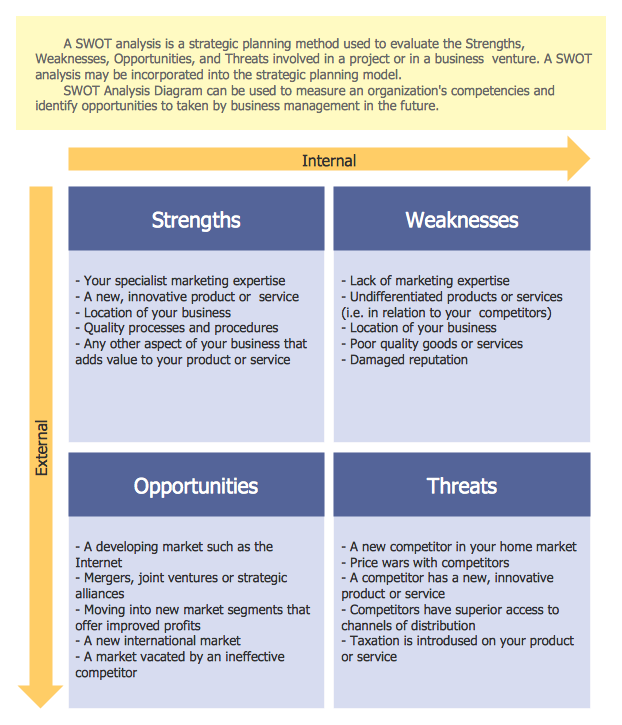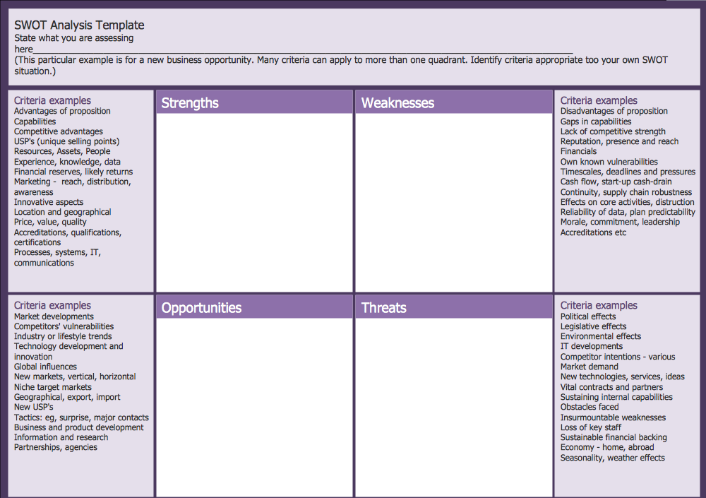 - Large quantity of ready-to-use vector objects makes your drawing a SWOT matrix quick and easy.