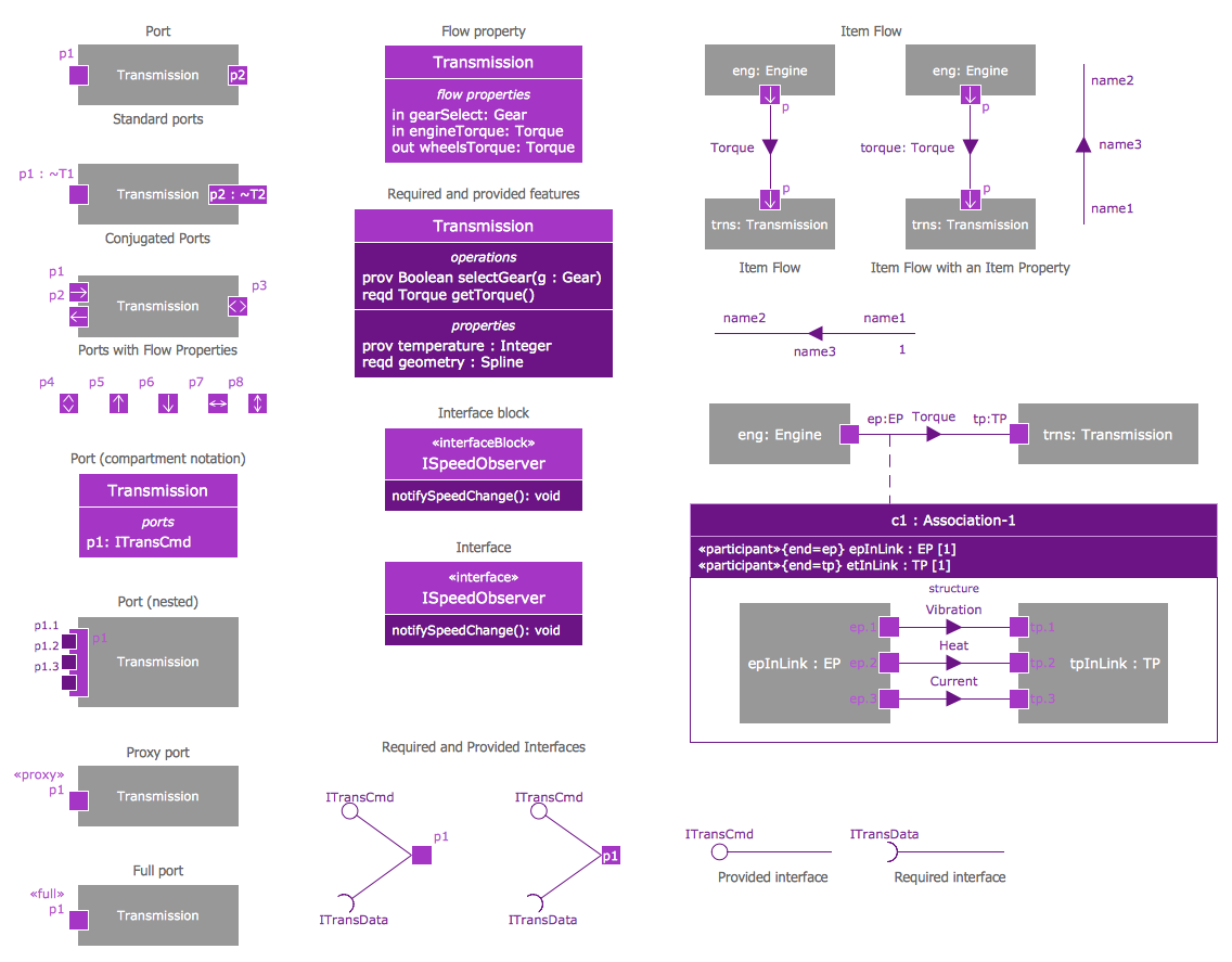 All source documents are vector graphic documents. They are available for reviewing, modifying, or converting to a variety of formats (PDF file, MS PowerPoint, MS Visio, and many other graphic formats) from the ConceptDraw STORE. The SysML Solution is available for all ConceptDraw DIAGRAM users.