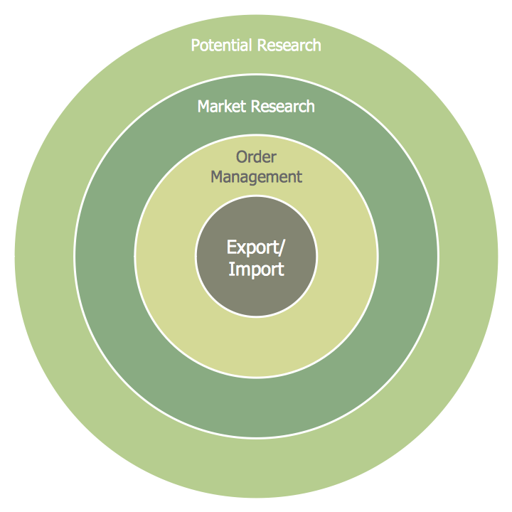 Target Diagram is a convenient and visual way of presentation information which is popular and widely used in marketing, business and economics. ConceptDraw DIAGRAM diagramming and vector drawing software extended with Target and Circular Diagrams solution from the Marketing area of ConceptDraw Solution Park is ideal for fast and easy drawing a Target Diagram.