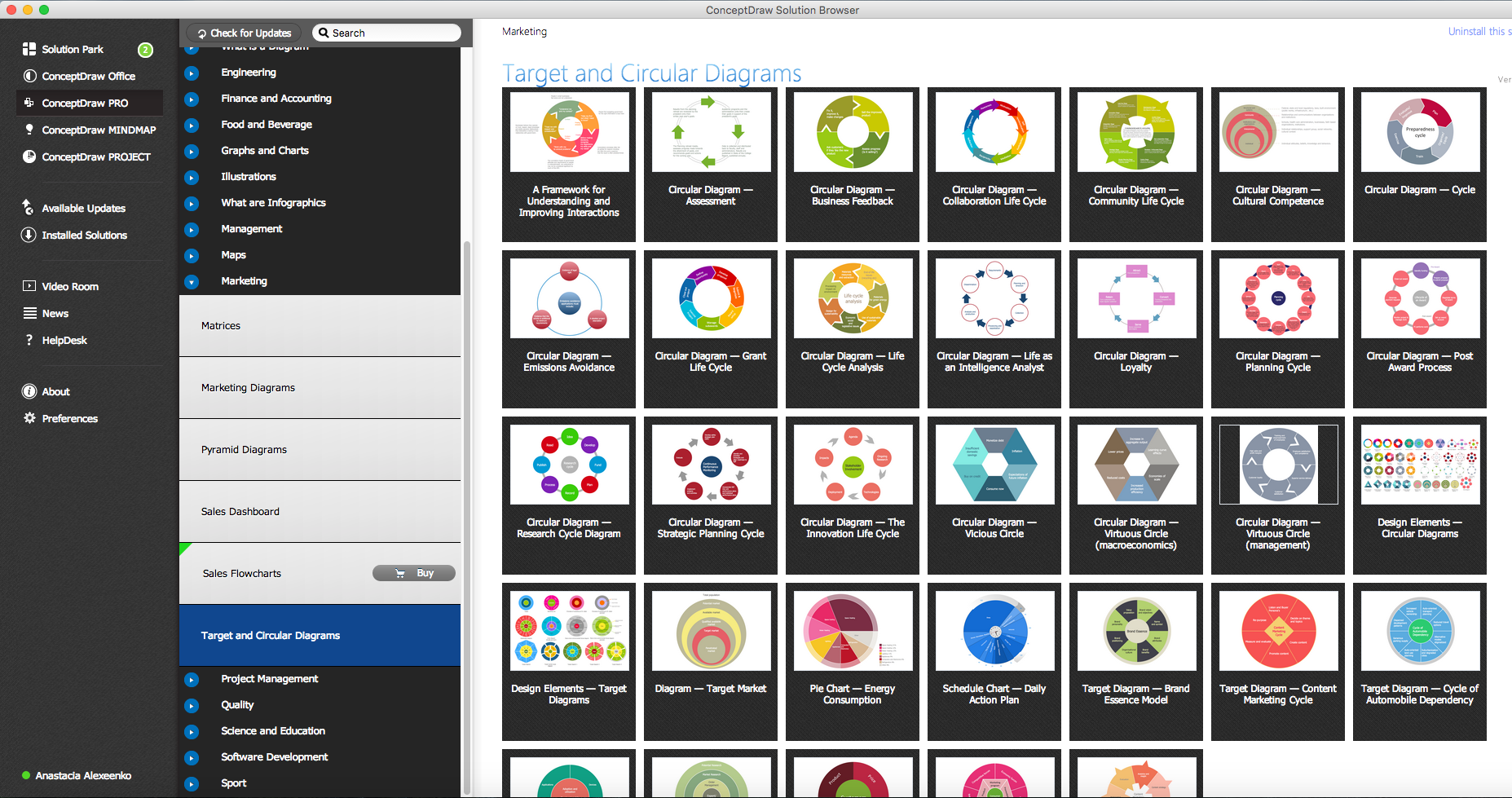 Circular Diagram is a type of diagram widely used in marketing and economics for visualization information in a clear and visual form. ConceptDraw DIAGRAM diagramming and vector drawing software offers the useful tools of the Target and Circular Diagrams solution from the Marketing area of ConceptDraw Solution Park for effective drawing a Circular Diagram of any complexity and design.