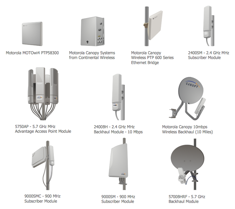 All source documents are vector graphic documents. They are available for reviewing, modifying, or converting to a variety of formats (PDF file, MS PowerPoint, MS Visio, and many other graphic formats) from the ConceptDraw STORE. The Telecommunication Network Diagrams Solution is available for all ConceptDraw DIAGRAM or later users.