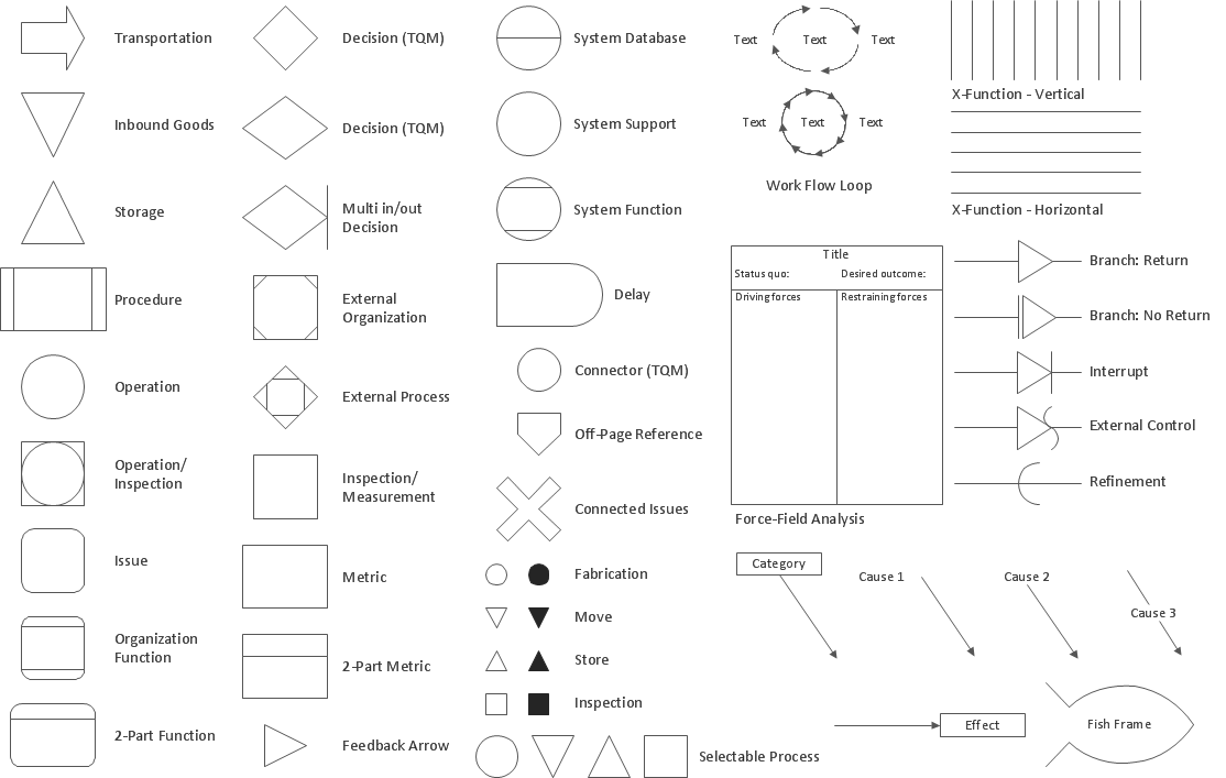 The Total Quality Management (TQM) Diagrams solution in ConceptDraw Solution Park extends ConceptDraw DIAGRAM diagramming software with samples, templates, and a comprehensive library of vector stencils for drawing TQM flowcharts. The TQM diagrams help you and your organization visualize business and industrial processes. TQM diagrams demonstrate clearly a process step-by-step in a visual manner, and allow one to compare visually the ideal and real stages of a process.