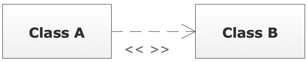 Allows to define the properties of the dependency relationship between classes or classes and packages.