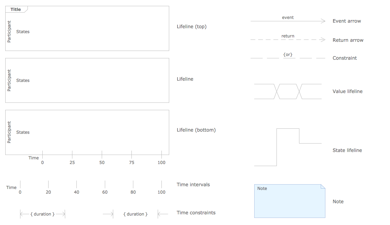 - Timing Diagram — diagram that shows behaviours of a given set of objects throughout a certain period of time.
