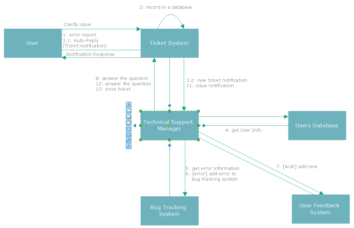 Example 4. UML Collaboration Diagram - Ticket Processing System