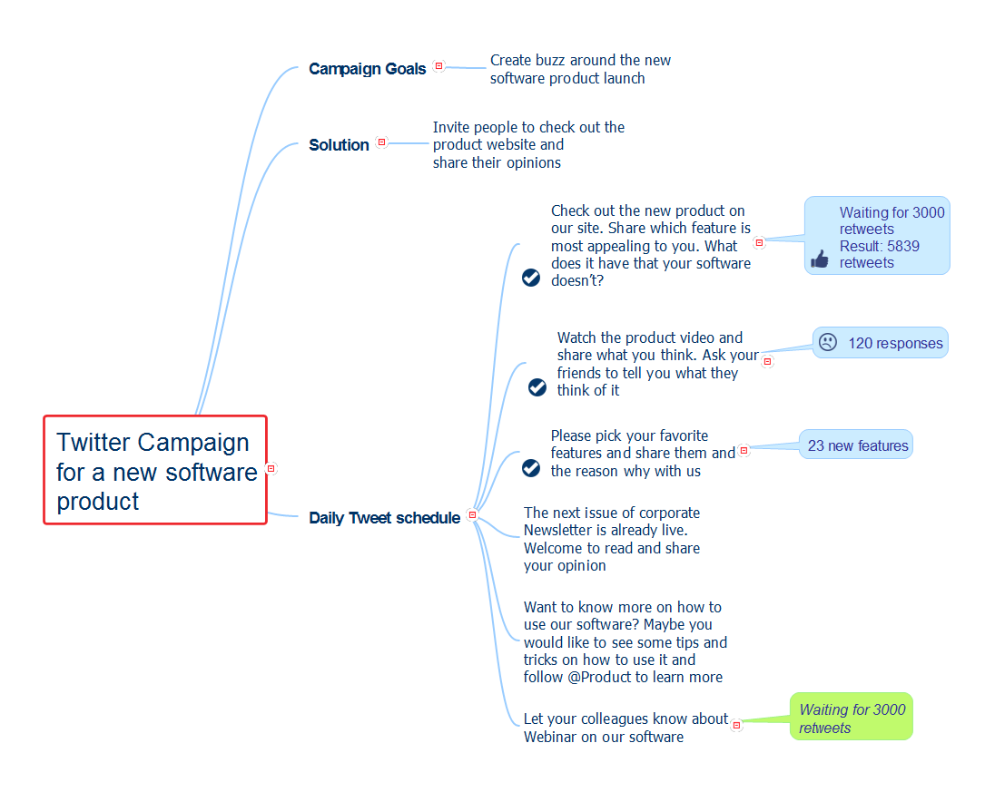 The launching of a new product on the market and its promotion are important tasks in the development and maintenance of the company's success. The process of launching a new product on the market allows the firm to establish itself in a particular segment, to remain competitive and to expand the sales volumes. To achieve the tangible success, the product must to be not just new, but with a certain set of unique qualities and characteristics, the relevance of which is determined at the initial stage of product development. The main objective of the review for a new product is to tell in details the consumers about the advantages of a given product, to offer the information about its unique and original qualities, the distinctive characteristics and competitive advantages, and about the nuances of used technologies, etc. The presented Mind Map created using the powerful drawing tools of ConceptDraw MINDMAP and ConceptDraw Solution Park visually illustrates an overview of a Twitter campaign for new software product.Matrix Organization Structure