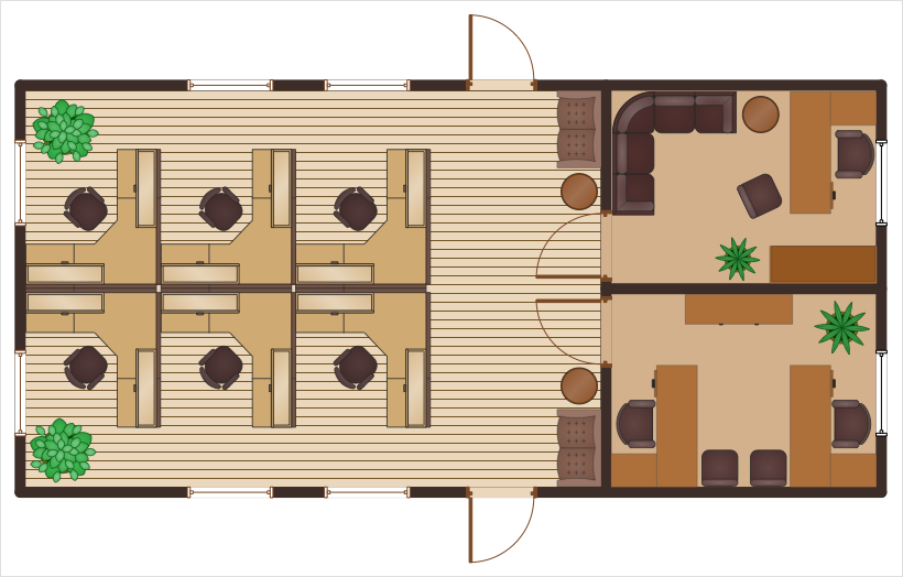 Designing the right office space is is an essential factor of business productivity. An office floor plan should reflect the needs of both employees and customers. ConceptDraw DIAGRAM allows you to draw the Floor Plan for your office using a special office equipment library as well as set of?special objects that?displays the?sizes, corners, squares and other floor plan details.- Office Design Tool