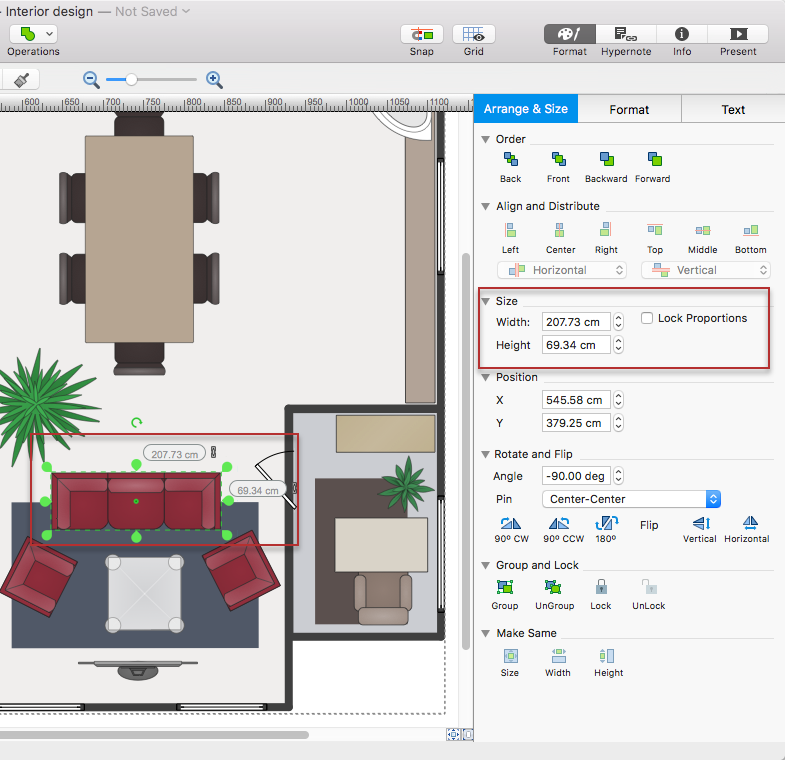 When creating diagram using ConceptDraw DIAGRAM , you can select, move, resize and rotate objects. After selecting an object (or objects) in a document, you can change it position, resize it or move an object to the desired position. The sizes of objects in ConceptDraw DIAGRAM can be changed by simple dragging, or you can set a particular size of any object. Using ConceptDraw PRO, you can re-size an object on the page using the absolute measurements instead of a mouse. You can make quick work of designing complex drawing using a combination of different-sized items.HelpDesk