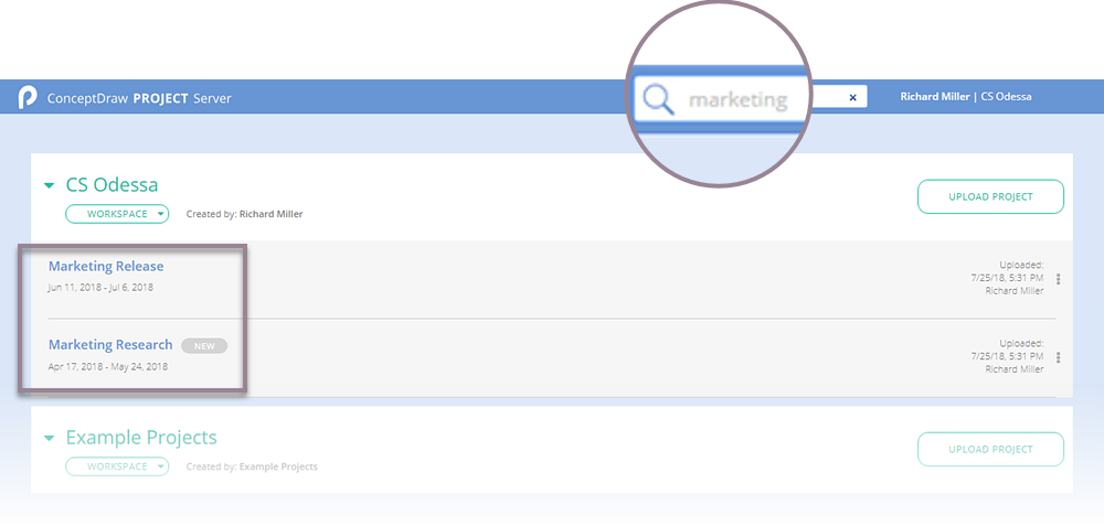 How to Find the Needed Project in ConceptDraw PROJECT Server Workspaces