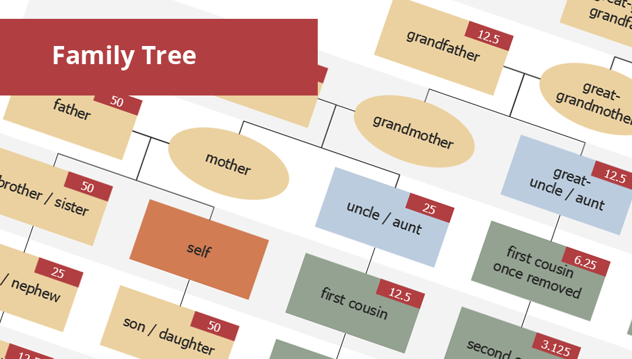 Family Tree solution with included vector design shapes for drawing family trees, pedigree chart symbols, photo blocks of different detailing and professionally designed samples, extends the functionality of ConceptDraw DIAGRAM software making it the best family tree maker and easy-to-use ancestry trees designer program for researchers, scientists, historians, genetics, medics, archeologists, and other stakeholders. Use it to design informative and colorful genealogy trees, simple family tree or extensive ancestry tree of any depth, genealogy schematics and illustrations with family trees.