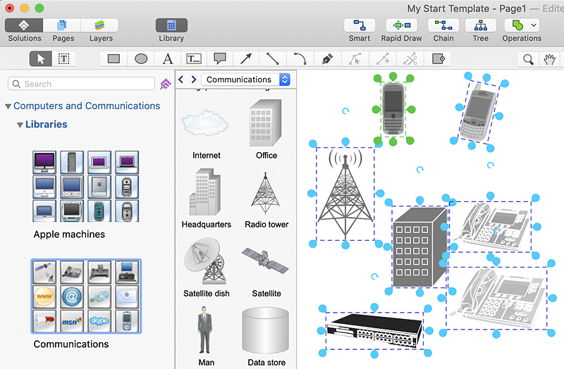 A lot of communication technologies and computer devices became the habitual pieces of our daily life. A lot of computer and communication visualizations are utilized anywhere and their creation needs the presence of comprehensive, easy-to-use software tool. Computers and Communications solution for ConceptDraw DIAGRAM provides 5 libraries containing 117 vector scalable icons which will be helpful when creating various computer networking illustrations, infographics, and schematics representing different electronic devices and communication infrastructure.