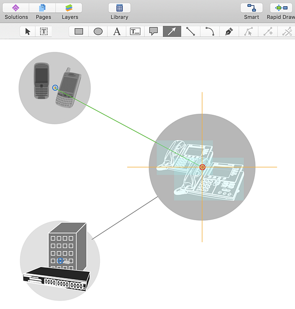 . To connect elements using this tool, drag the connector from one connect dot to another.