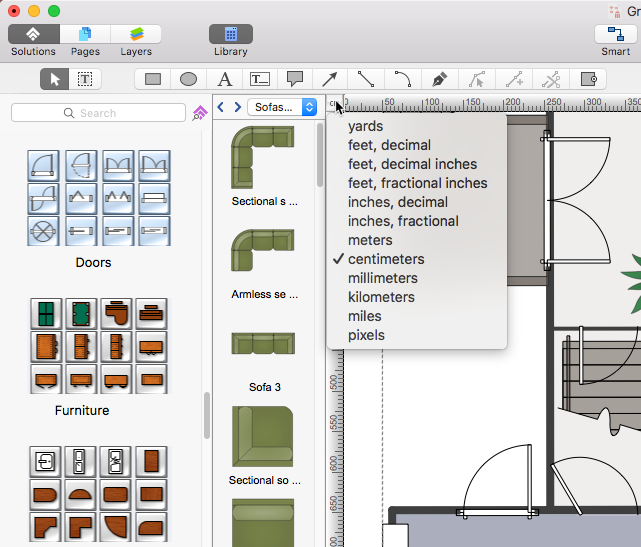 Charts that represent real objects with precise dimensions smaller or larger by some amount are the scaled drawings. Floor plans, maps, technical blueprints are always the scaled drawings. Scale drawings are similar to dimensions of the real object. Various units of measurement are applied to depicting dimensions. When creating a scaled drawing we can use meters, centimeters, and millimeters; we also can use yards, feet, and inches. This is because the US utilize its own system of units, and the other countries take the metric system of measurement units. ConceptDraw DIAGRAM offers the easy way of choosing the appropriate units of measurement for your scaled drawing. ConceptDraw DIAGRAM allows you to make different drawings with different measurement units and scales.