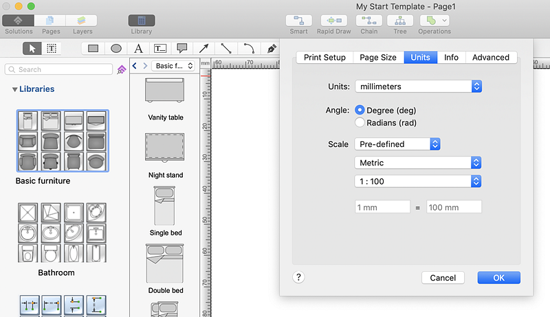 - Set the measurement units and the scale for your document using Document Properties dialog that can be accessed from the File menu.