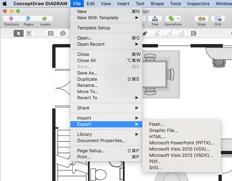 - Finally, you can export your drawing as MS PowerPoint® and Adobe PDF files to present your creative projects, architectural and floor plans concepts whether a private residence, office, restaurant, store or any other building.