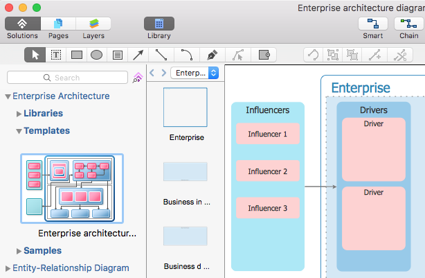 How to Create an Enterprise Architecture DiagramAn Enterprise Architecture (EA) is a conceptual plan that defines the structure and operation of an organization. The aim of enterprise architecture is to determine how an organization can effectively achieve its current and future objectives. The Enterprise Architecture often uses visual models to support the decision-making process. ConceptDraw DIAGRAM allows you to design Enterprise Architecture diagram using the Enterprise Architecture Diagrams solution.