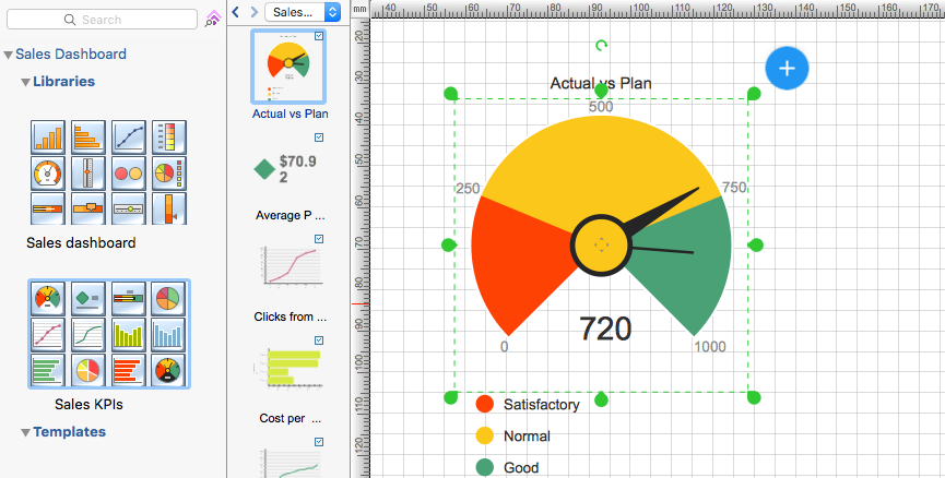How to Create a Sales DashboardSales Dashboard is a visual representation of a set of sale KPIs, grouped and arranged in a special way. All the KPIs are placed on one screen and all changes can be tracked quickly and easily. Sales Dashboard solution is designed to help sales organizations gain maximum benefits from timely and reliable information to improve the quality of decisions and improve sale performance. Using ConceptDraw Sales Dashboard allows to view at a glance the sale performance and to monitor the main sales KPIs. The custom sales dashboard displays real-time information on sales performance KPIs with the help of intuitive and easy-to-understand diagrams and charts.