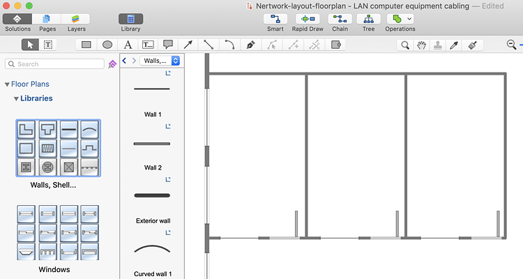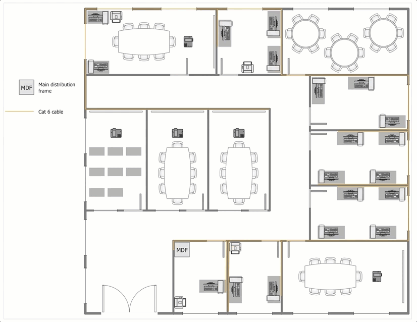 How to Create a Network Layout Floor PlanThe Network Layout Diagram is used to show the location of your company network equipment. Making a network floor plan involves many different elements that can be managed using ConceptDraw DIAGRAM The ability to design network floor plans is delivered by the Network Layout Floor Plans solution. Combining the elements from network typologies creates a layered picture of the network architecture, which can basically be defined as the design of a communications network - a floor plan for its physical components, and a clearly defined set of principles and procedures. Logical and physical topology diagrams combined with floor plan are ideal for depicting office network. To create a practical computer network floor plan, the network administrator must adhere to the specified requirements and limitations of the office or building in which the LAN will operate - things such as hardware availability, company budget, and customer needs must all be taken into account. To create a Physical Network Diagram, you should draw your office layout and your network equipment.
