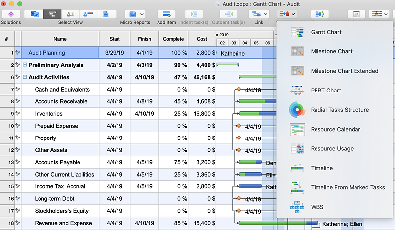 How to Create Project Diagrams on MacProject management diagrams give you the ability to view at a detailed level project attributes such as project scope, logical connections in the project, critical paths, key events on the timeline, milestones, tasks, calendars for work, and resource utilization. Transforming project data into different visual forms is a productive way of looking at your project from different perspectives. It also helps you deliver project information in a suitable way depending on your objectives and audience. The ability to create project diagrams using ConceptDraw OFFICE is delivered by a special solution. To accomplish this you should have ConceptDraw PROJECT, ConceptDraw DIAGRAM, and the PM Easy solution installed. ConceptDraw PROJECT allows generating of 9 types of visual project diagrams: Gantt Chart, Milestones chart, PERT chart, Radial Structure chart, Resource Calendar, Resource Usage diagram, Timeline, Timeline From Marked Tasks, and WBS chart. The diagram will be generated in ConceptDraw DIAGRAM format (CDDZ).