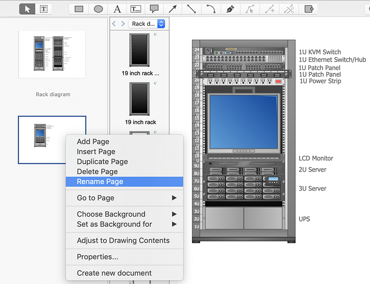 How to Add a Rack Diagram to a PowerPoint PresentationRack diagram will be helpful when deciding what equipment should be purchased. ConceptDraw Rack Diagrams solution allows you to make the scale diagrams that can help you to choose the right dimensions of equipment. Also, a rack diagram is useful for properly installing and arranging the existing network equipment. The PowerPoint presentation on the concept of your server room rack layouts can be very informative and helpful. ConceptDraw DIAGRAM allows you to make an MS PowerPoint Presentation from your rack diagrams in the few simple steps.