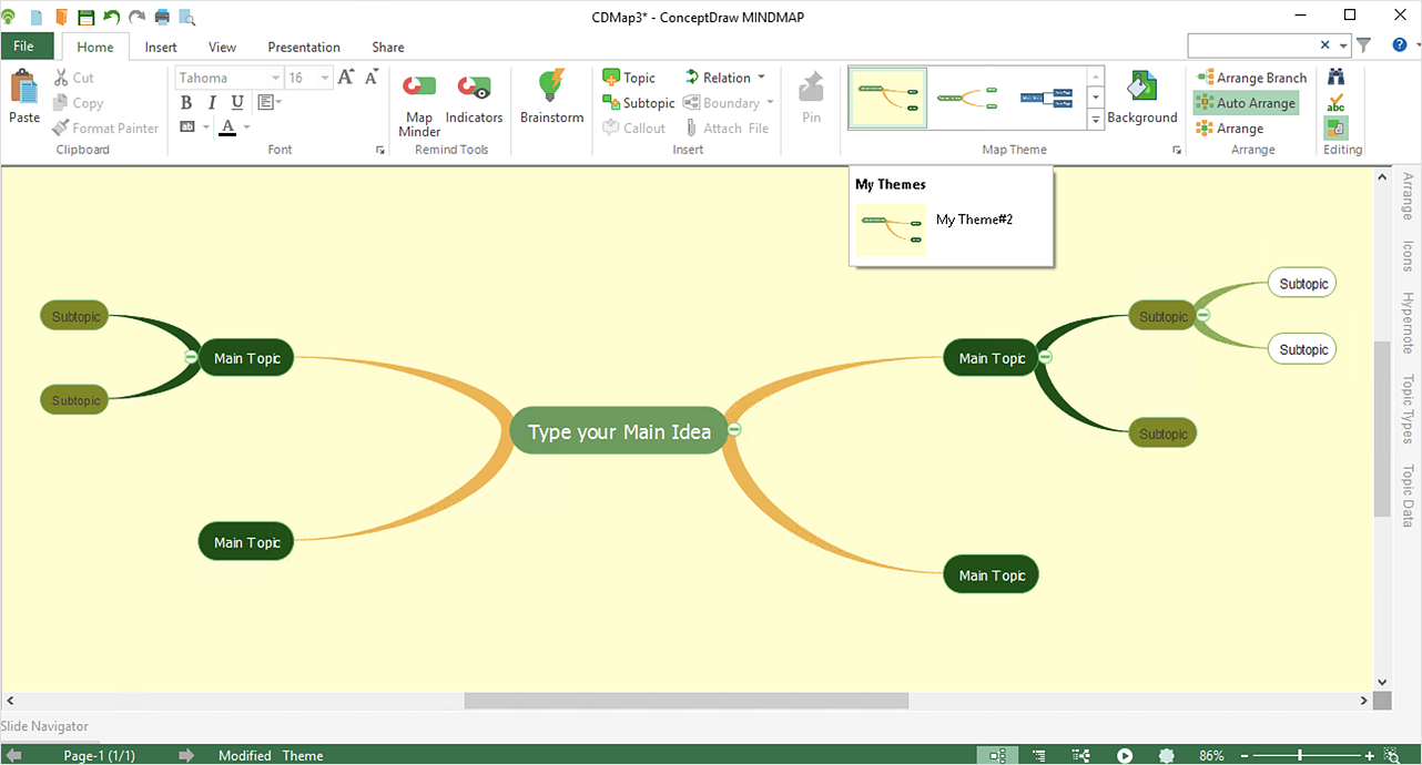 How to Customize the Style of Your Mind MapHere at ConceptDraw we have seen just how creative our users are when creating maps through ConceptDraw MINDMAP, so we make it a point to provide the best platform possible for our users to realize their creative potential. The simplest way to create a custom Theme for your mind maps is to modify one of the preset styles from the Map Theme Gallery: