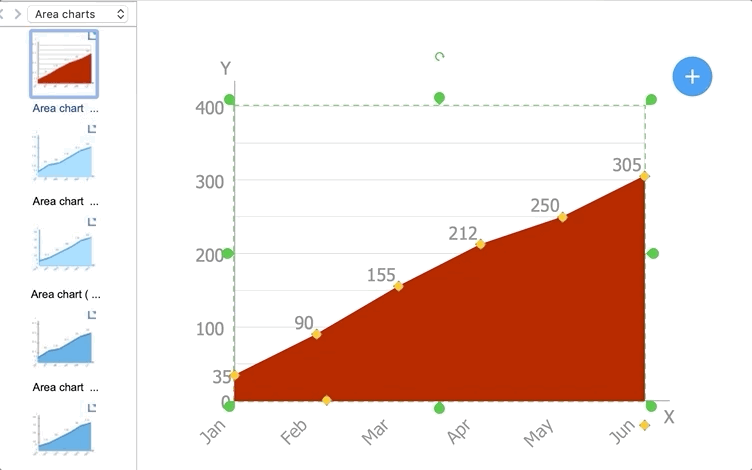 How to Draw an Area ChartUsing an area chart is a visual way to compare two or more quantities. An area chart displays a series as a set of points connected by a line, with all the area filled in below the line. ConceptDraw DIAGRAM allows you to draw a simple and clear Area Chart using the Area Charts solution.