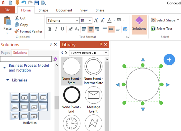 How to Develop a Business Process ModelThe purpose of a business process modeling diagram — is to represent a certain sequence of procedures so that it will be clear to all participants and stakeholders. Thus, all process participants can observe the interrelations and proceedings that happen within a business process. Thus, it is very important to use a certified notation system — Business Process Model and Notation (BPMN) to describe the steps of business processes. ConceptDraw DIAGRAM makes drawing BPMN diagram simple, due to its free Business Process Model and Notation solution. There are 8 stencil libraries containing 143 vector BPMN 2.0 objects. This article uses the example Application Handling and Invoicing diagram to explain what you need to get started designing a business process model using the ConceptDraw Business Process Model and Notation solution. The Business Process Model solution has ConceptDraw’s RapidDraw interface that allows you to draw business process diagrams quickly and effortlessly. The only you need is to place the first object of your diagram and select a directional arrow from the object. Rapid Draw will automatically add and connect the next object in your diagram.