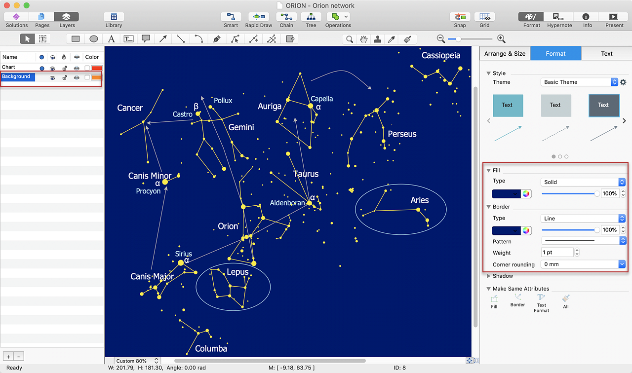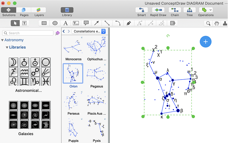 How to Draw a Сonstellation СhartConceptDraw DIAGRAM can be used as a tool for drawing scientific and educational astronomy illustrations and diagrams that contains astronomy symbols of constellations, galaxies, stars, and planets. Ability to create astronomical maps with ConceptDraw DIAGRAM is contained in the Astronomy solution. This solution extends ConceptDraw DIAGRAM with 7 libraries that contain more than 190 vector shapes that can be used when drawing maps of continents.